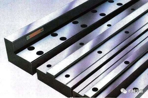 機(jī)床上常用的導(dǎo)軌形式是鑲鋼導(dǎo)軌,它的使用已有很長的歷史。鑲鋼導(dǎo)軌是導(dǎo)軌系統(tǒng)的固定元件,其截面為矩形。它可水平裝在機(jī)床的床身上,也可以與床身鑄成一體,分別被稱為鑲鋼式或整體式。鑲鋼式導(dǎo)軌是由鋼制成的,經(jīng)淬硬和磨削。