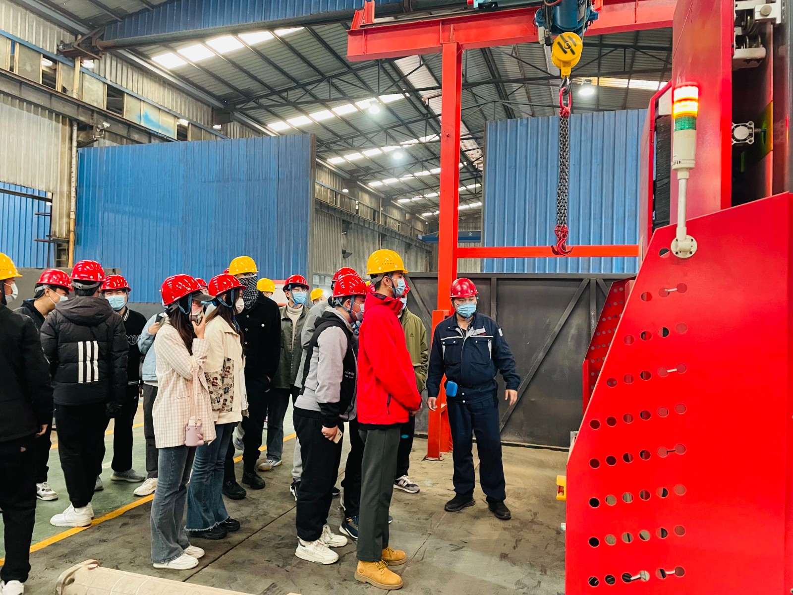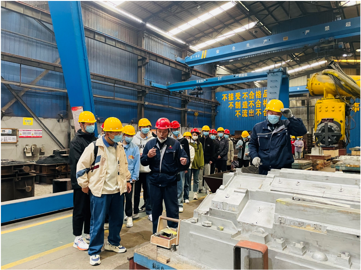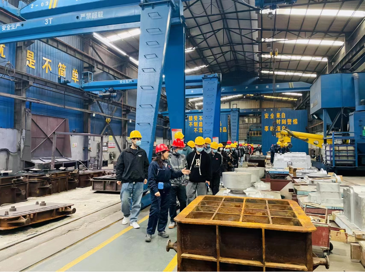 首先,公司生產(chǎn)總監(jiān)閆濤向?qū)W生們介紹了金太陽(yáng)鑄業(yè)的企業(yè)概況、鑄造業(yè)在gao duan制造領(lǐng)域中的重要性及參觀an quan注意事項(xiàng)等,隨后學(xué)生們有序進(jìn)入車間,參觀了造型、熔煉、澆鑄、機(jī)器人清理打磨等生產(chǎn)設(shè)備及產(chǎn)品展廳,對(duì)整個(gè)鑄造生產(chǎn)流程有了直觀的感受。參觀過(guò)程中,車間技術(shù)人員認(rèn)真對(duì)鑄造生產(chǎn)工藝及設(shè)備進(jìn)行了分析和講解,并耐心解答了學(xué)生提出的問(wèn)題,讓大家對(duì)鑄造工藝流程有了更深的認(rèn)識(shí)。